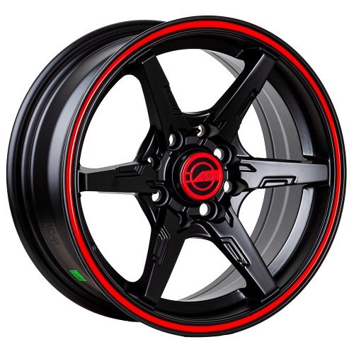 Llantas Aro 14X6 4X100 4X114.3 Et20 Ams Matte Black + Red QC662 (Set 4 Llantas)